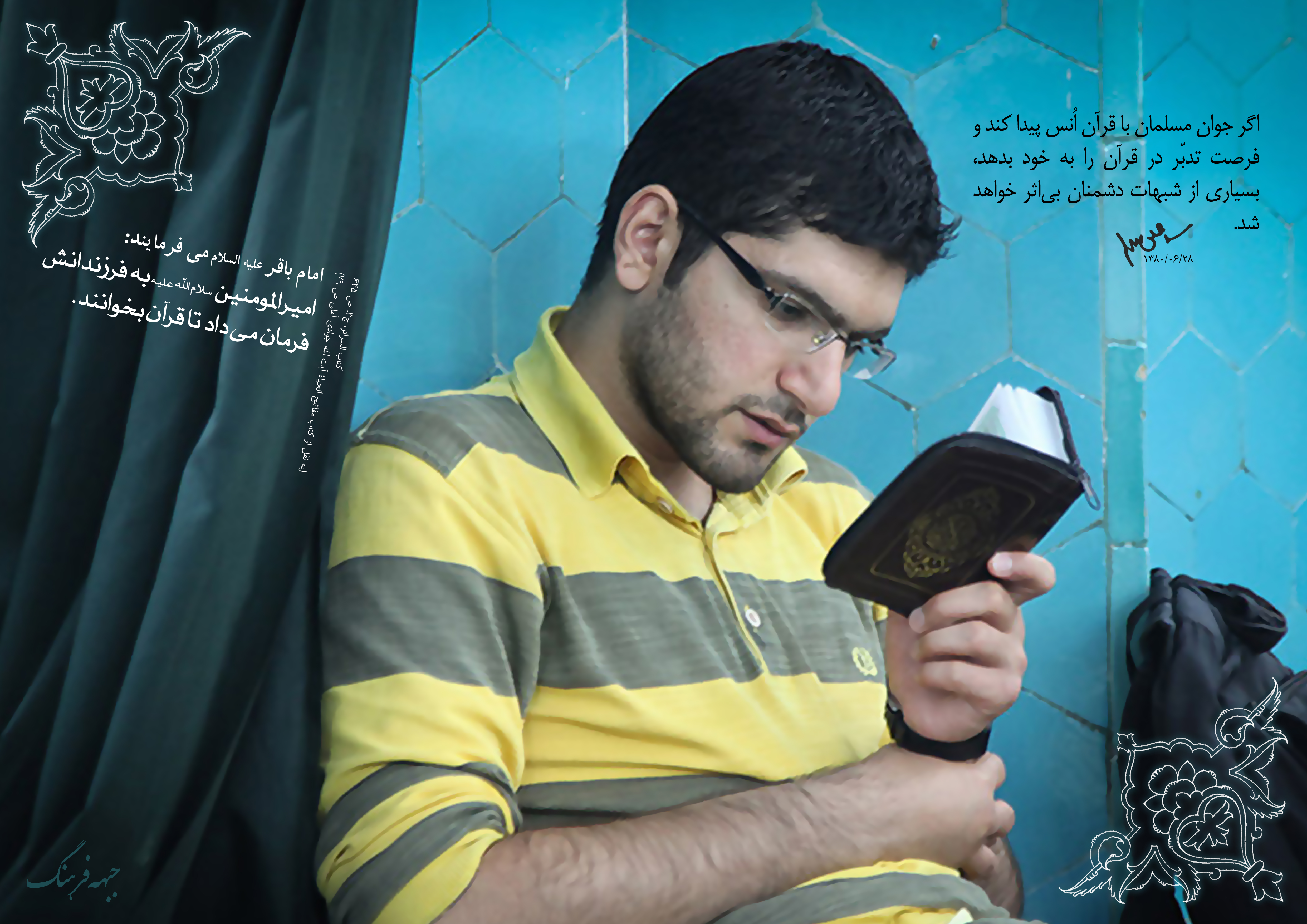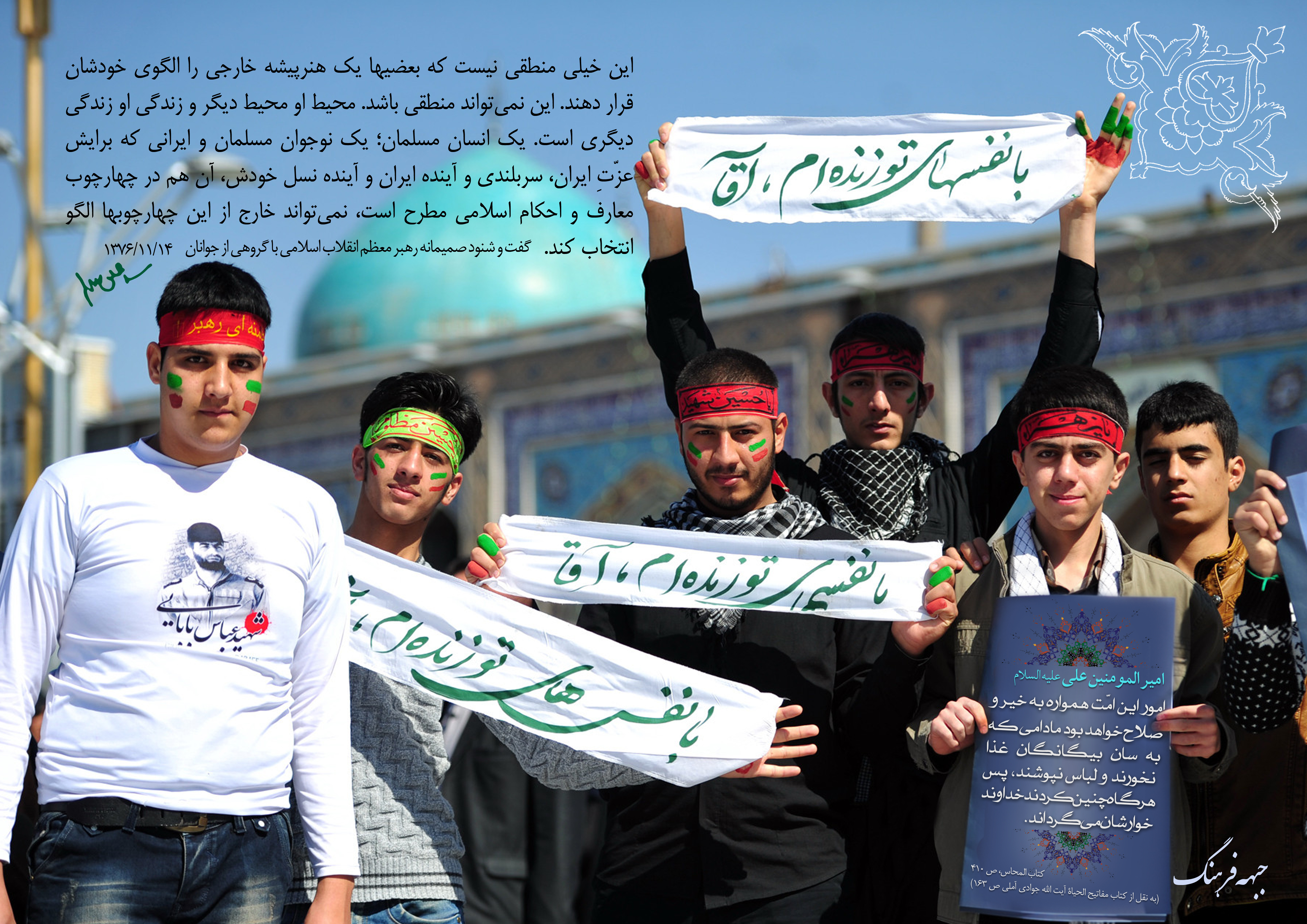 مدتها بود دوست داشتم کاری کنم برای حضرت آقا، وقتی خبر اهدای امتیاز پوسترهای استاد فخّار به امام و مقتدایمان را شنیدم و طرح های زیبای ایشان را که واقعاً قابل ستودن است، دلسرد شدمکارهای حقیر کجا و طراحی های استاد بزرگوار کجا.